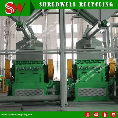 ゴム製 パン粉のための自動スクラップのタイヤの寸断機械がプロセス、私達の粒状化プロセスの後の最終生成物を寸断するタイヤを良い粉砕機として設計されていて専門にするシュレッドウェルは99.9%繊維の自由なゴム製 パン粉、サイズであるおよそ1-5mmである。